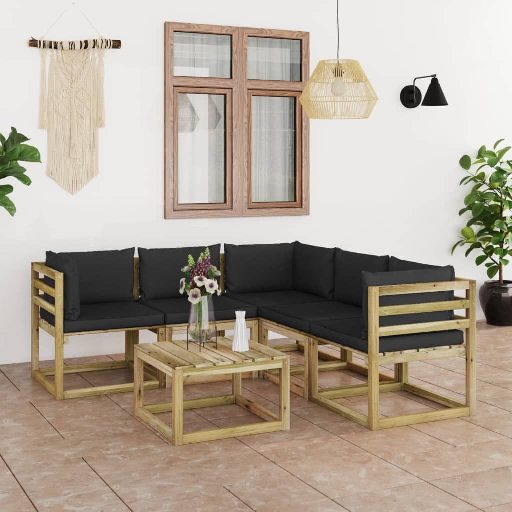 6-cz. zestaw wypoczynkowy do ogrodu, z czarnymi poduszkami