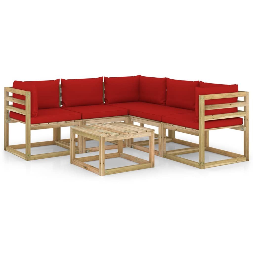 6-cz. zestaw wypoczynkowy do ogrodu, z czerwonymi poduszkami
