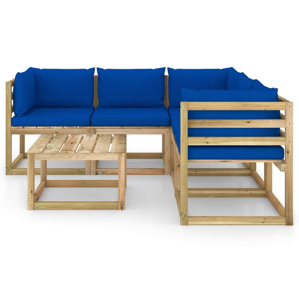6-cz. zestaw wypoczynkowy do ogrodu z niebieskimi poduszkami