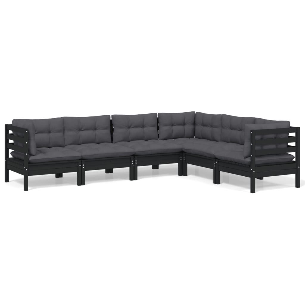 6-cz. zestaw wypoczynkowy do ogrodu, z poduszkami, czarny