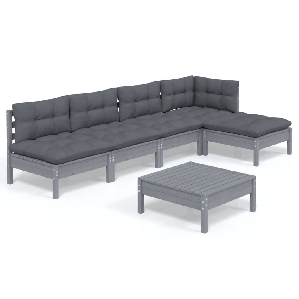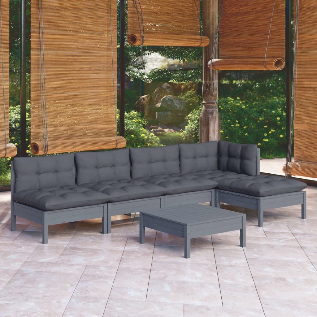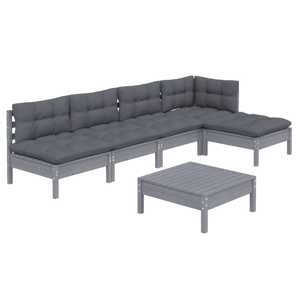 6-cz. zestaw wypoczynkowy do ogrodu, z poduszkami, szary, sosna