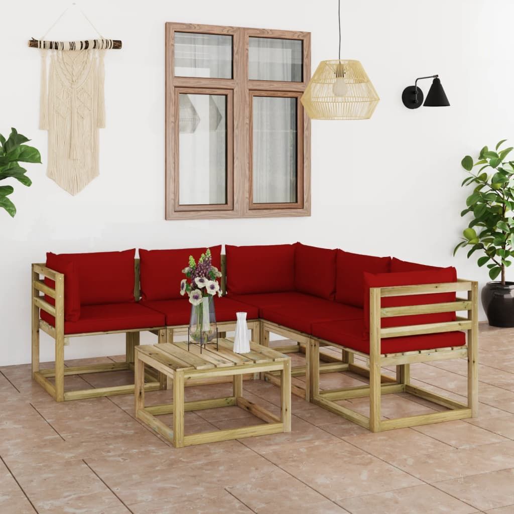 6-cz. zestaw wypoczynkowy do ogrodu z poduszkami w kolorze wina