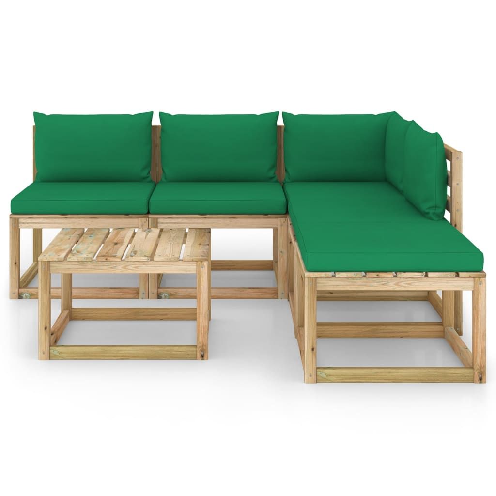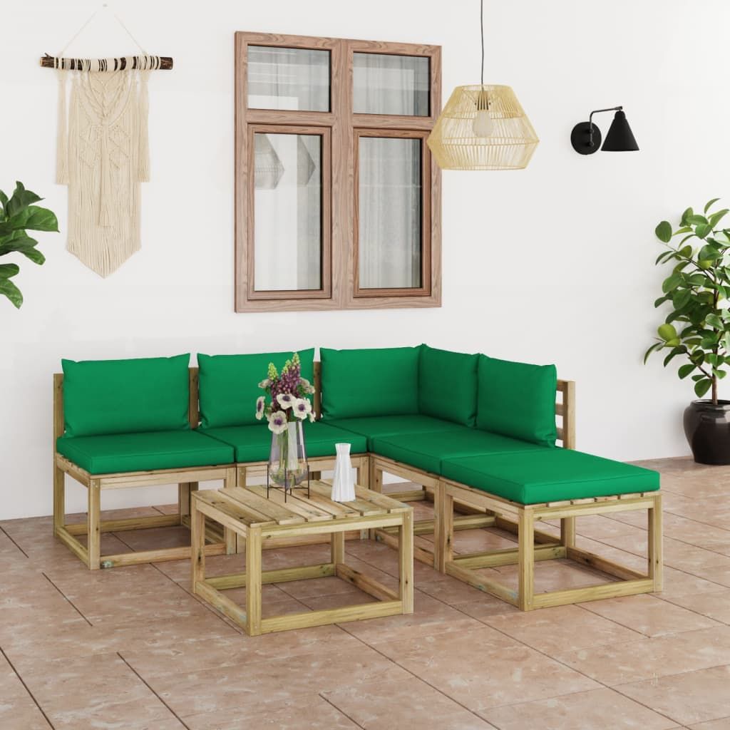 6-cz. zestaw wypoczynkowy do ogrodu, z zielonymi poduszkami