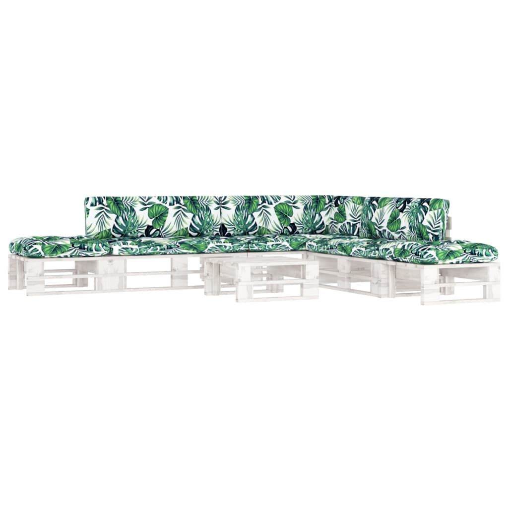 6-cz. zestaw wypoczynkowy z palet, z poduszkami, biały, sosna