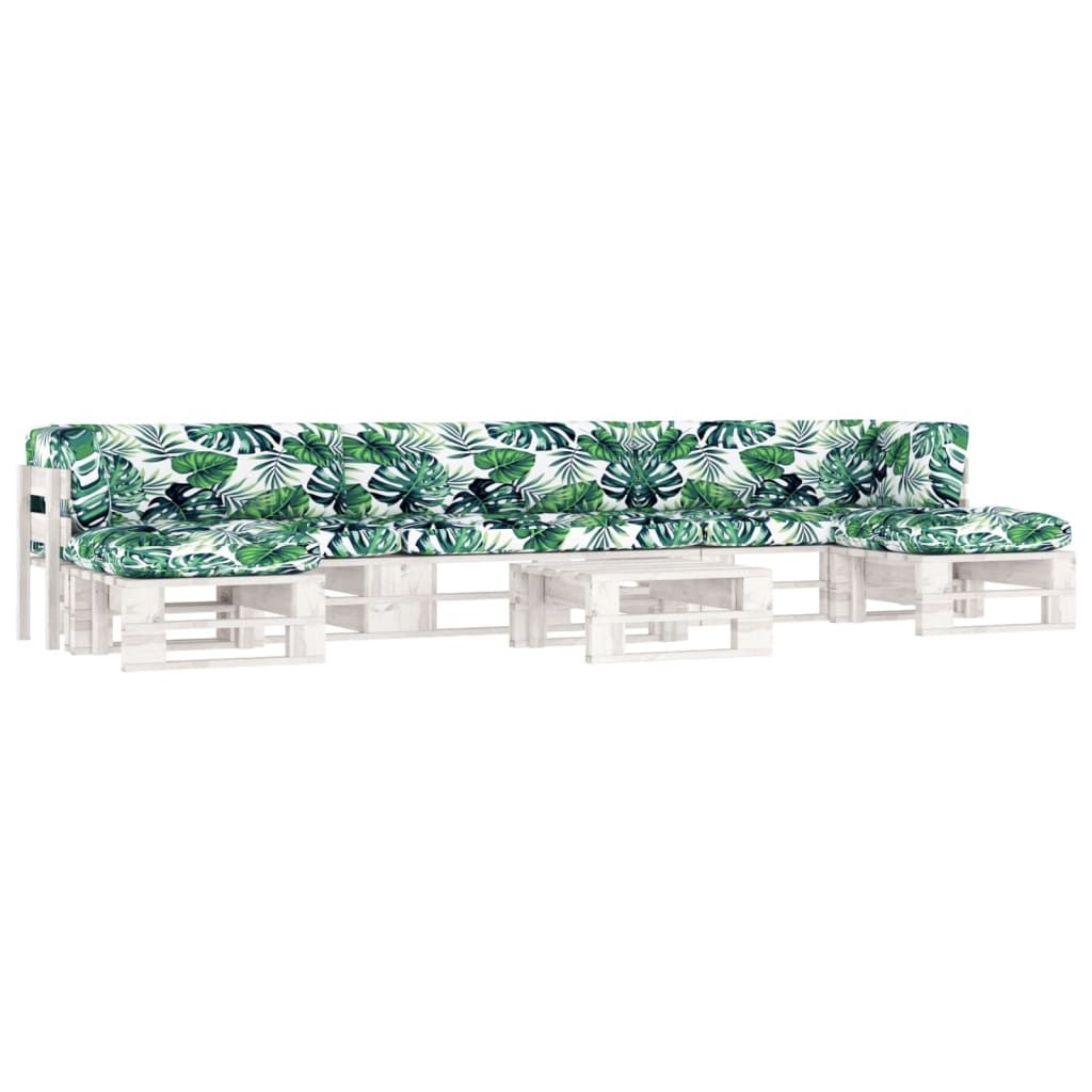 6-cz. zestaw wypoczynkowy z palet, z poduszkami, biały, sosna