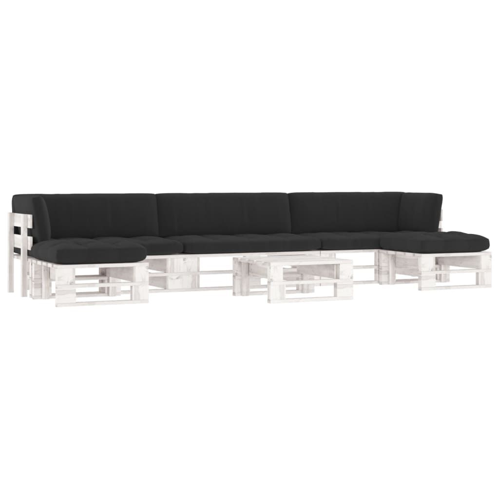 6-cz. zestaw wypoczynkowy z palet, z poduszkami, biały, sosna