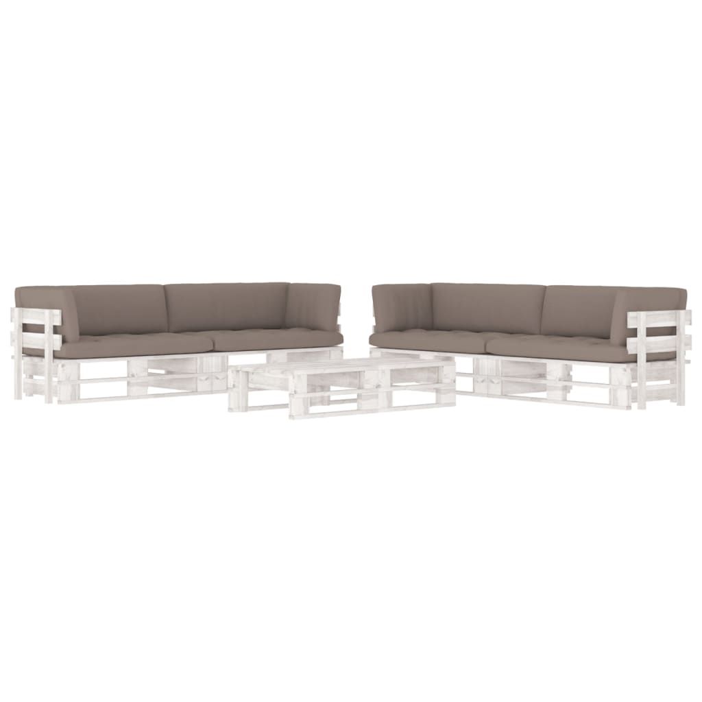 6-cz. zestaw wypoczynkowy z palet, z poduszkami, biały, sosna