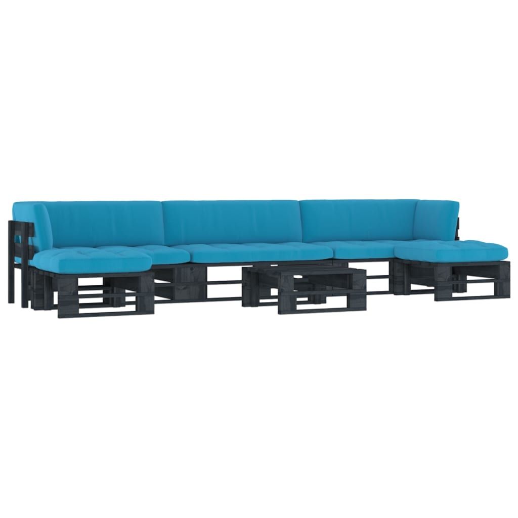 6-cz. zestaw wypoczynkowy z palet, z poduszkami, czarny, sosna