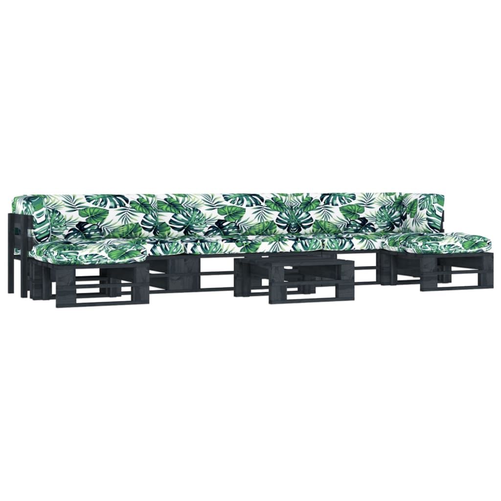 6-cz. zestaw wypoczynkowy z palet, z poduszkami, czarny, sosna