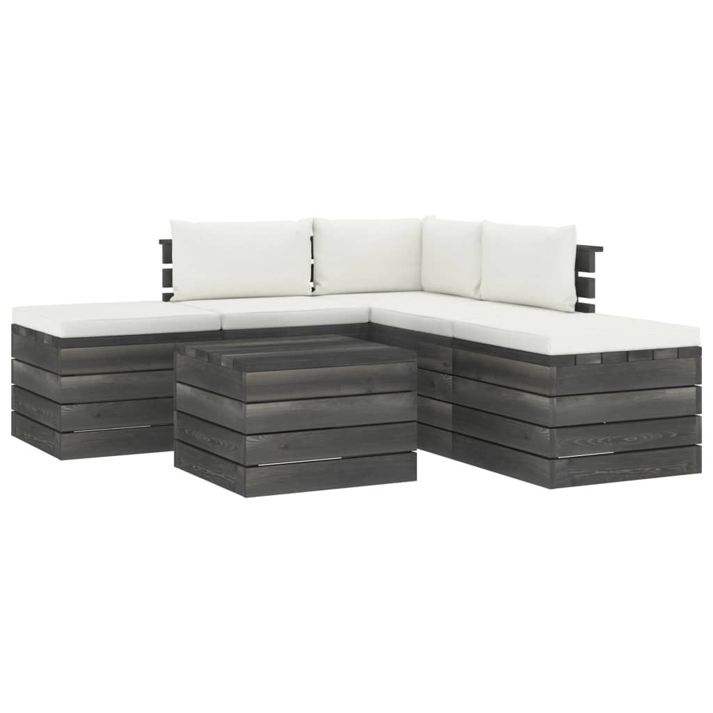 6-cz. zestaw wypoczynkowy z palet, z poduszkami, lita sosna