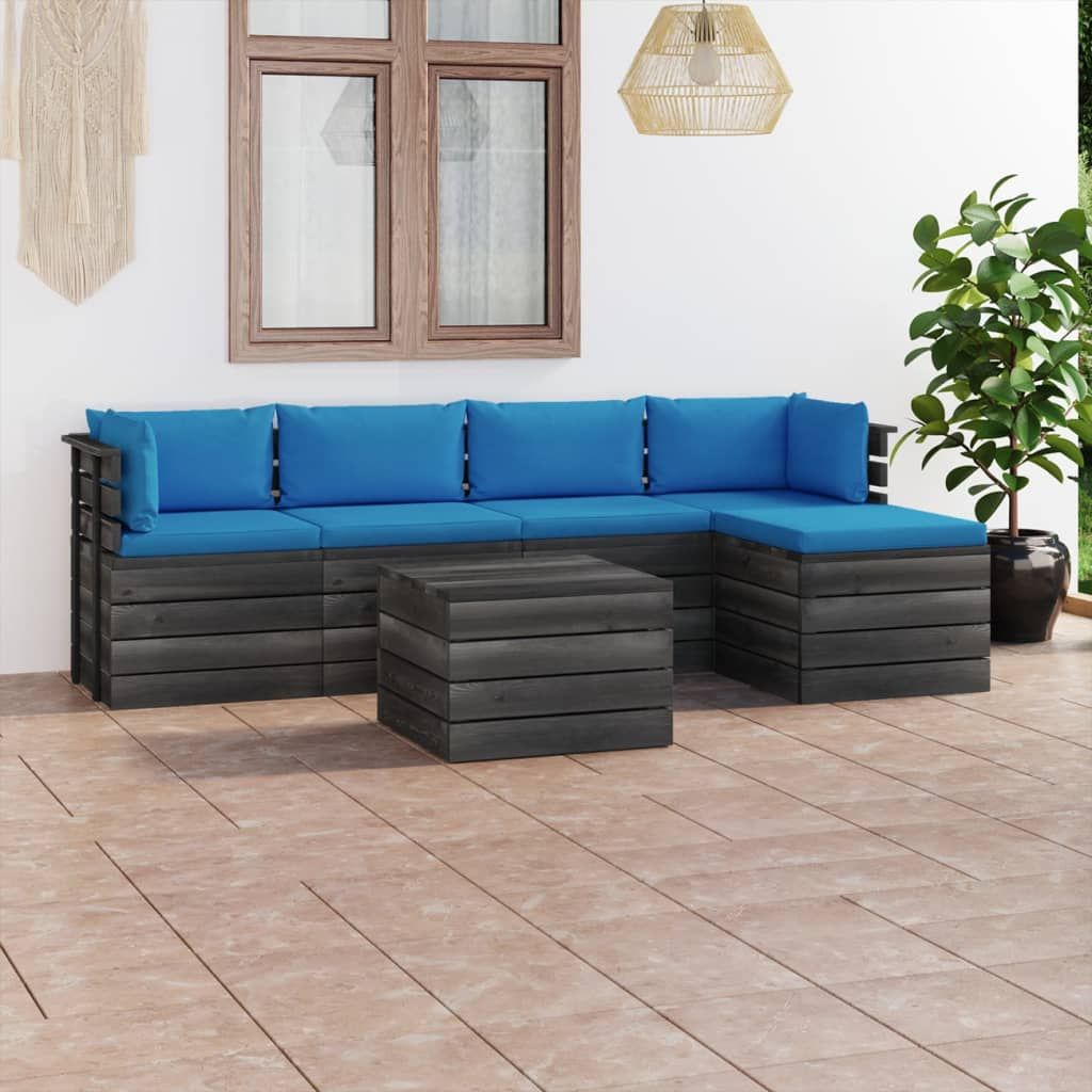 6-cz. zestaw wypoczynkowy z palet, z poduszkami, lita sosna