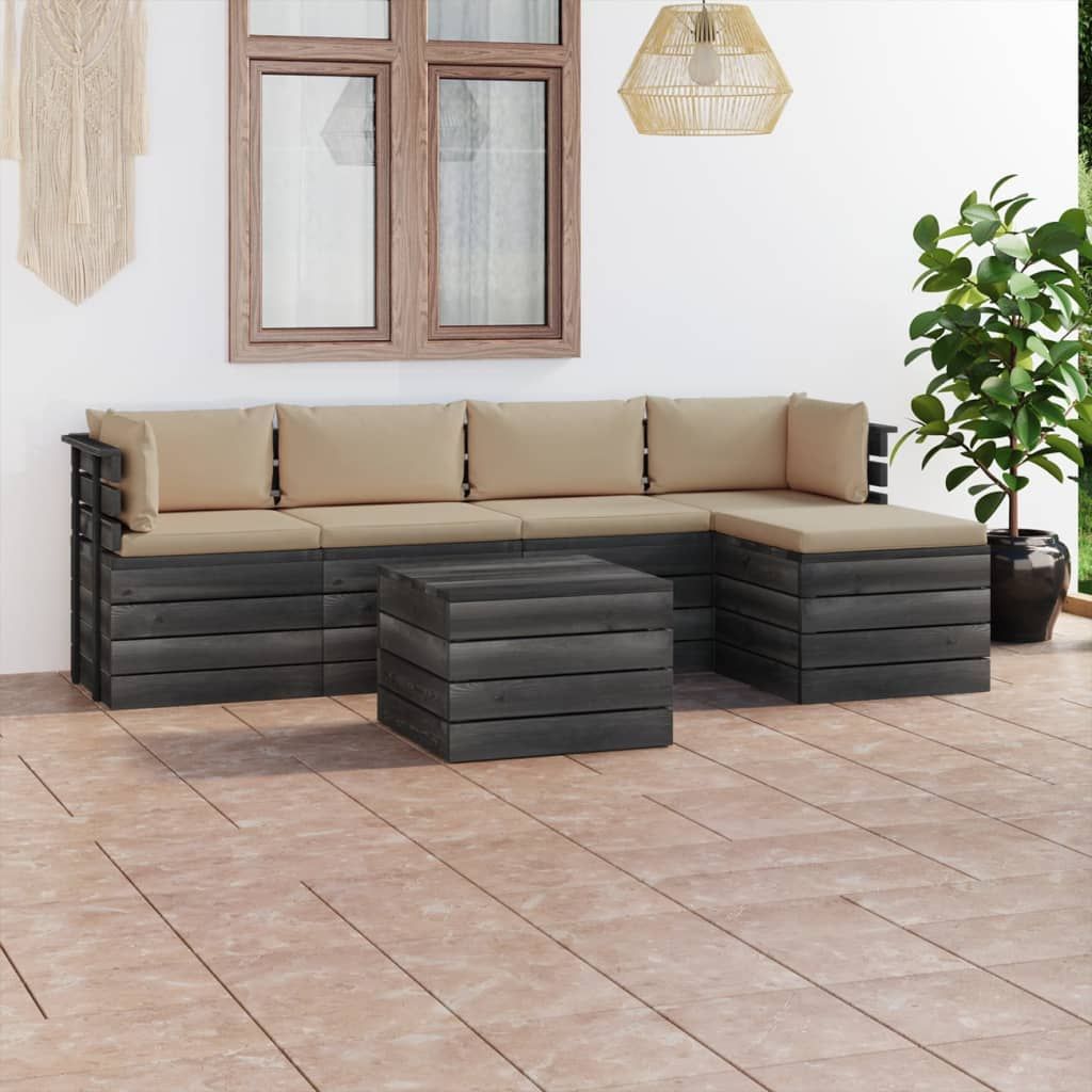 6-cz. zestaw wypoczynkowy z palet, z poduszkami, lita sosna