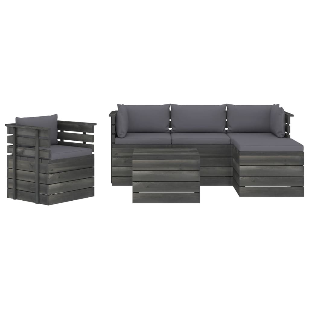 6-cz. zestaw wypoczynkowy z palet, z poduszkami, lita sosna