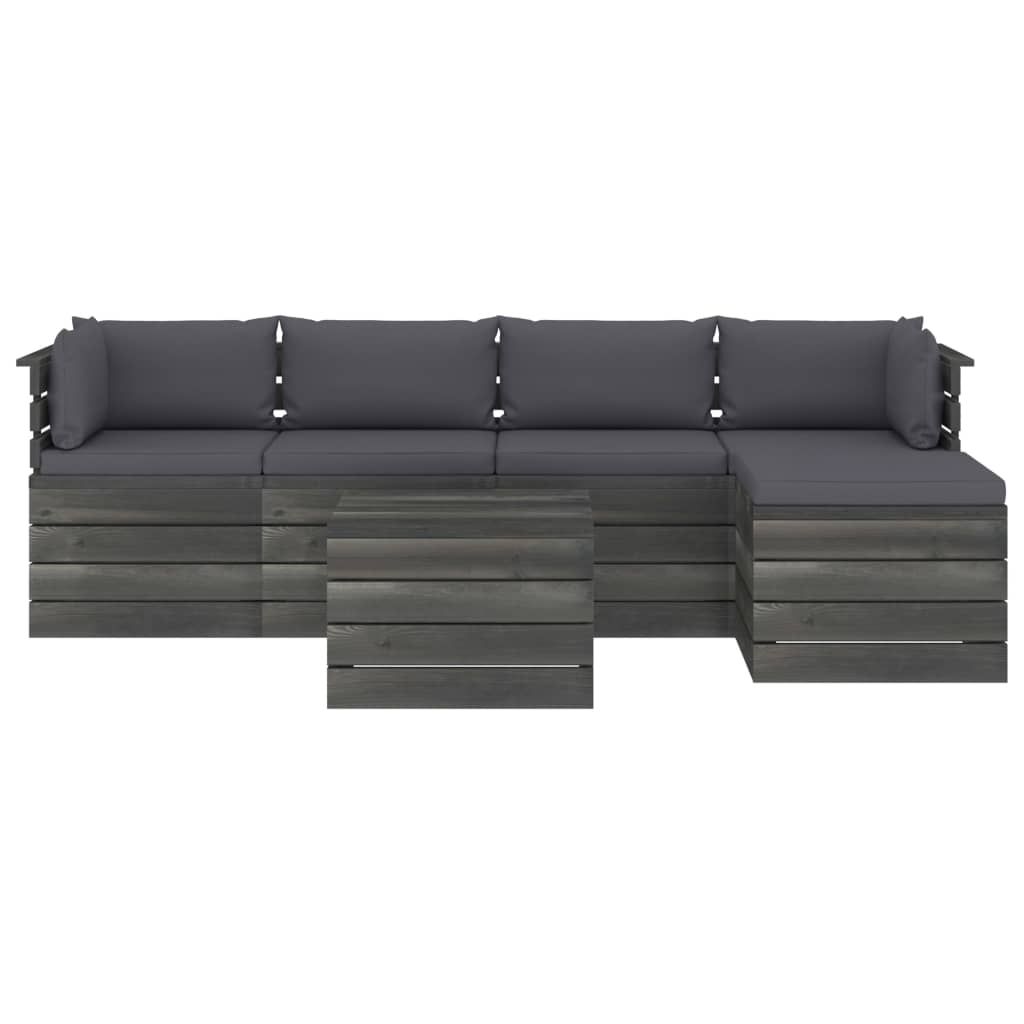 6-cz. zestaw wypoczynkowy z palet, z poduszkami, lita sosna
