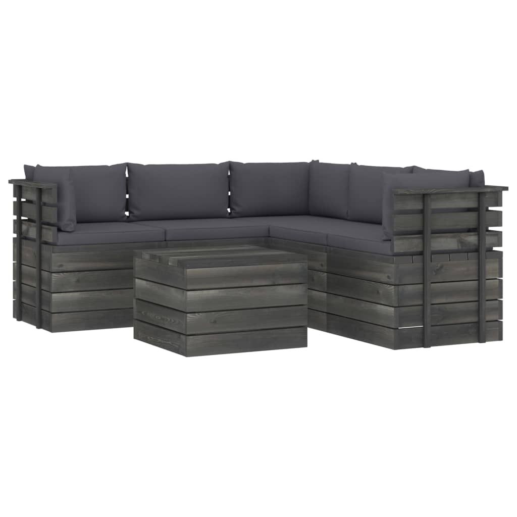 6-cz. zestaw wypoczynkowy z palet, z poduszkami, lita sosna