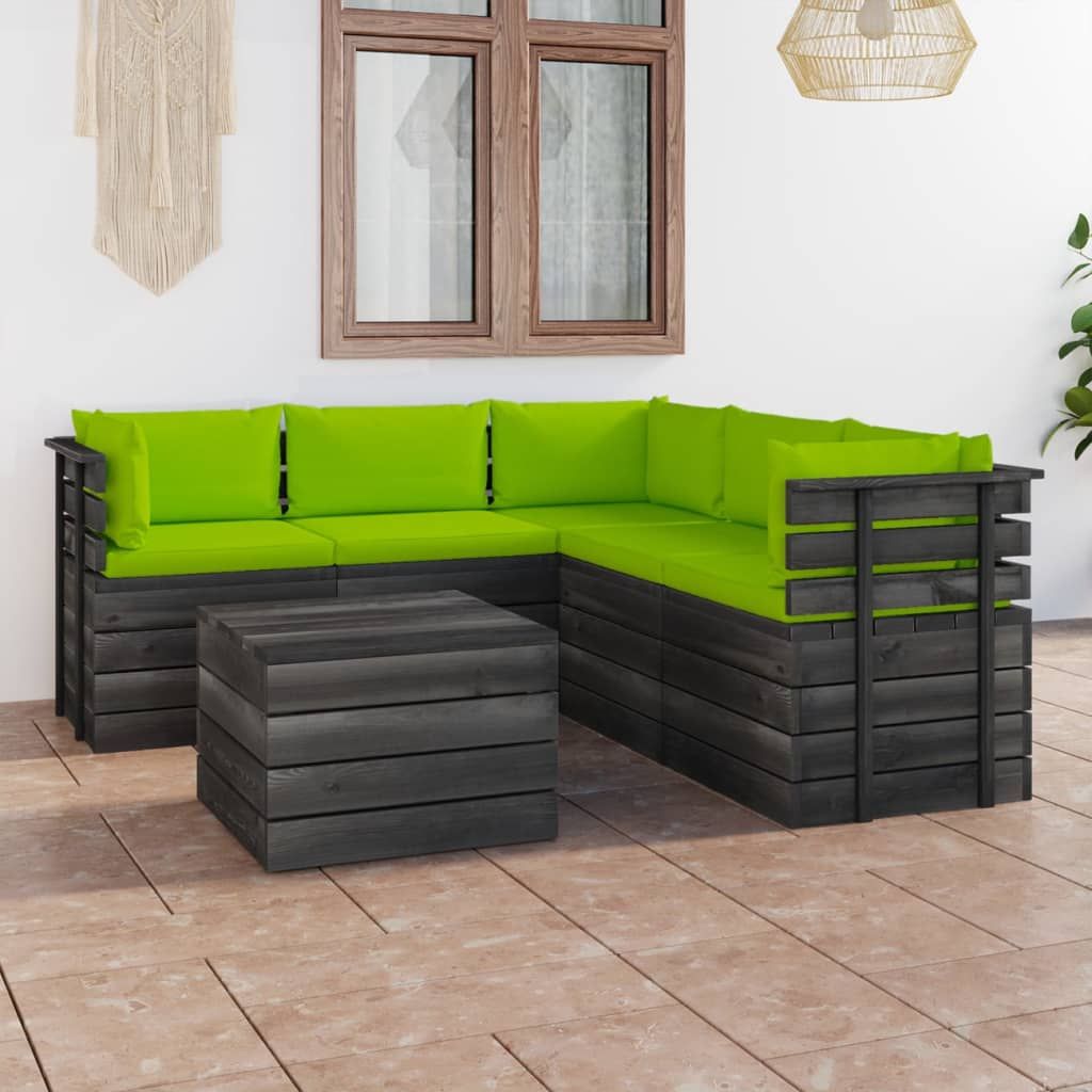 6-cz. zestaw wypoczynkowy z palet, z poduszkami, lita sosna