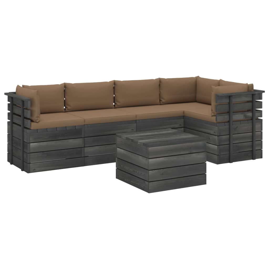 6-cz. zestaw wypoczynkowy z palet, z poduszkami, lita sosna