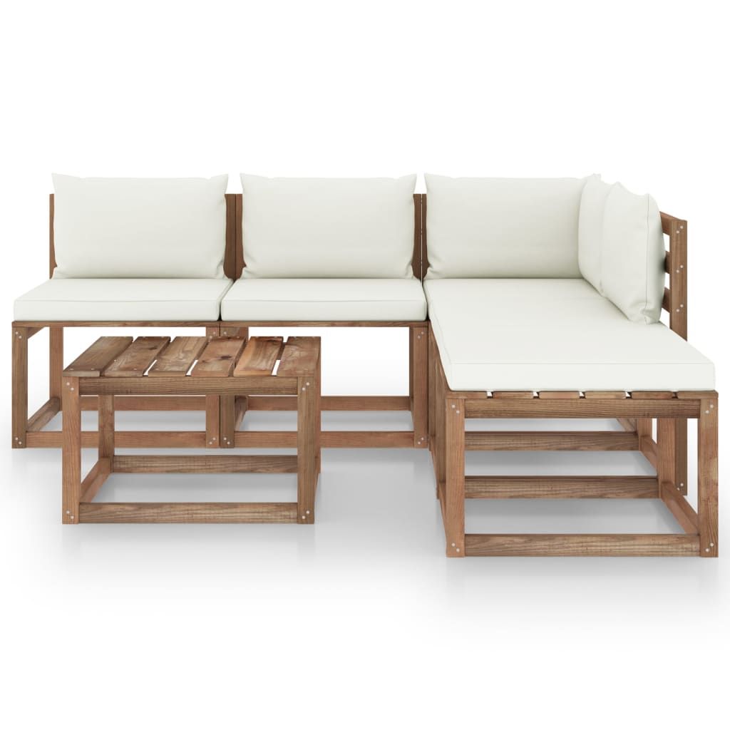 Ten ogrodowy zestaw wypoczynkowy stanowi znakomity wybór, aby się zrelaksować i nacieszyć dobrą pogodą albo zdrzemnąć lub porozmawiać z rodziną i przyjaciółmi. Za sprawą ponadczasowej konstrukcji z palet wniesie on odrobinę rustykalnego uroku na Twoje patio, do ogrodu lub do salonu. Wykonany z impregnowanego drewna sosnowego zestaw wypoczynkowy z palet jest trwały, odporny na czynniki atmosferyczne i przyjazny dla środowiska. Ma on solidną konstrukcję i nie wymaga zbyt wielu czynności konserwacyjnych. W połączeniu z grubo wyściełanymi poduszkami zapewnia najwyższy komfort. Dodatkowo modułowa konstrukcja umożliwia ustawienie go w dowolnej aranżacji, zgodnie z własnym gustem. Uwaga: aby przedłużyć żywotność mebli ogrodowych, zalecamy zabezpieczenie ich wodoodpornym pokrowcem.