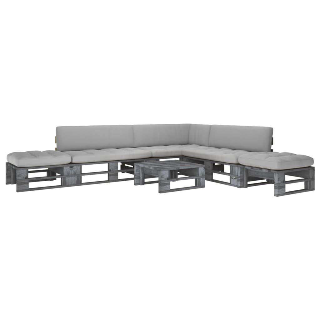 6-cz. zestaw wypoczynkowy z palet, z poduszkami, szary, sosna