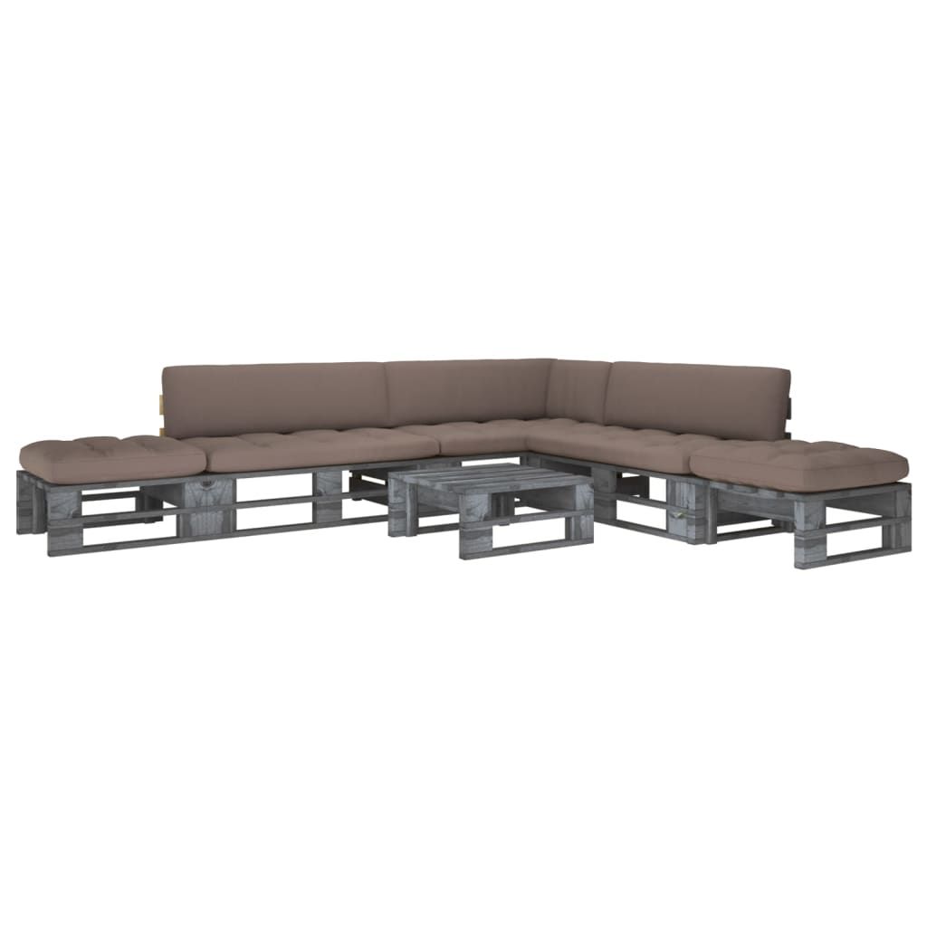 6-cz. zestaw wypoczynkowy z palet, z poduszkami, szary, sosna