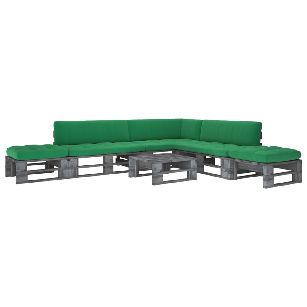 6-cz. zestaw wypoczynkowy z palet, z poduszkami, szary, sosna