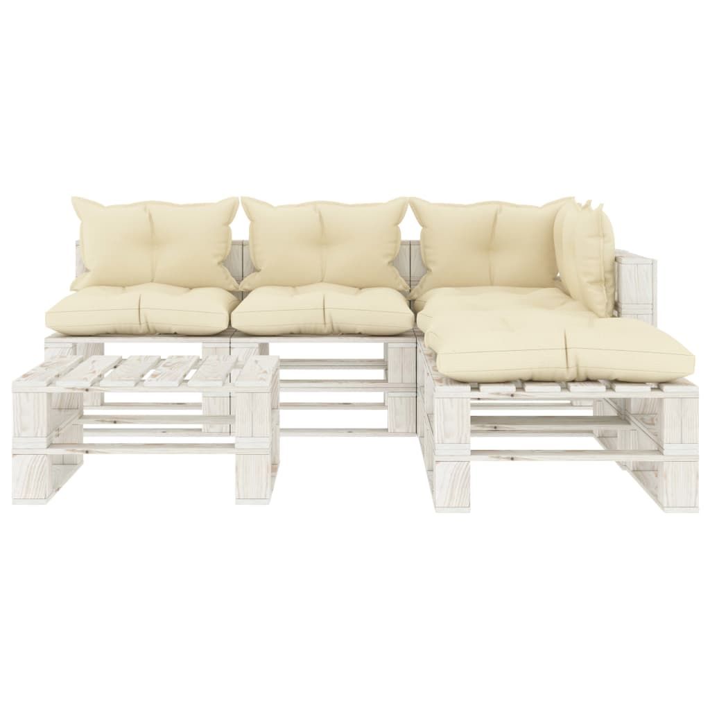6-częściowy zestaw mebli ogrodowych z palet, kremowe poduszki