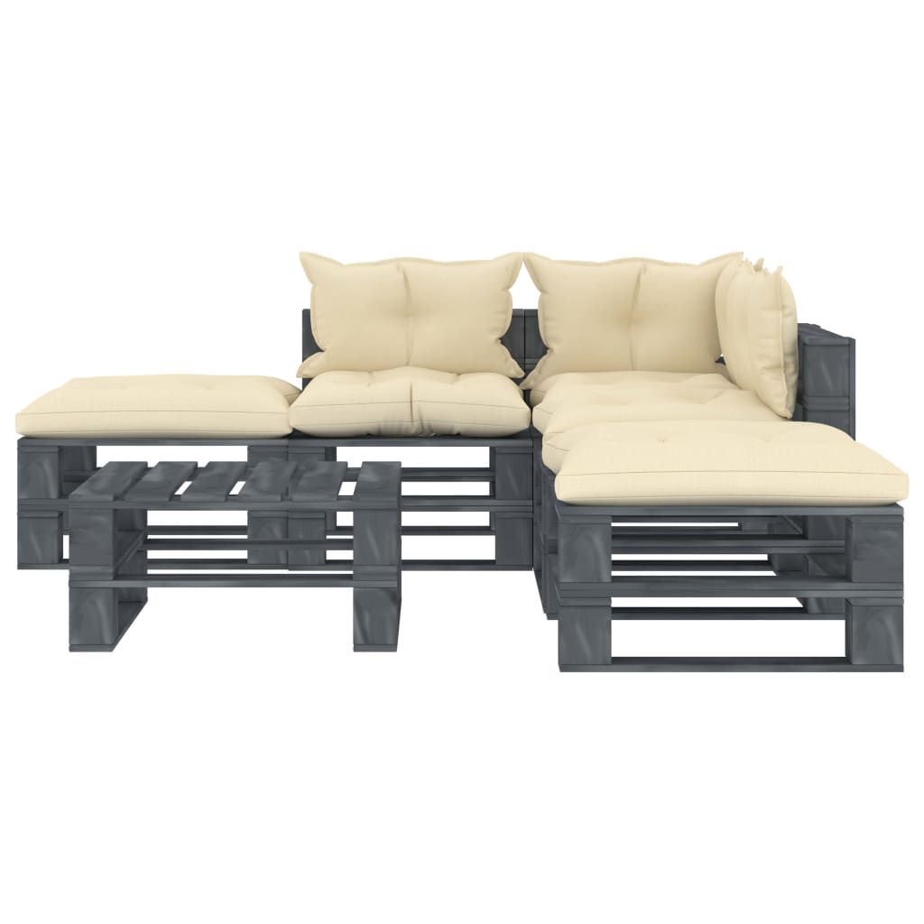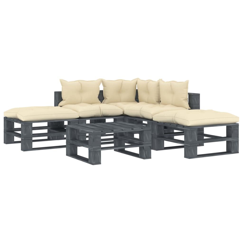 6-częściowy zestaw mebli ogrodowych z palet, kremowe poduszki