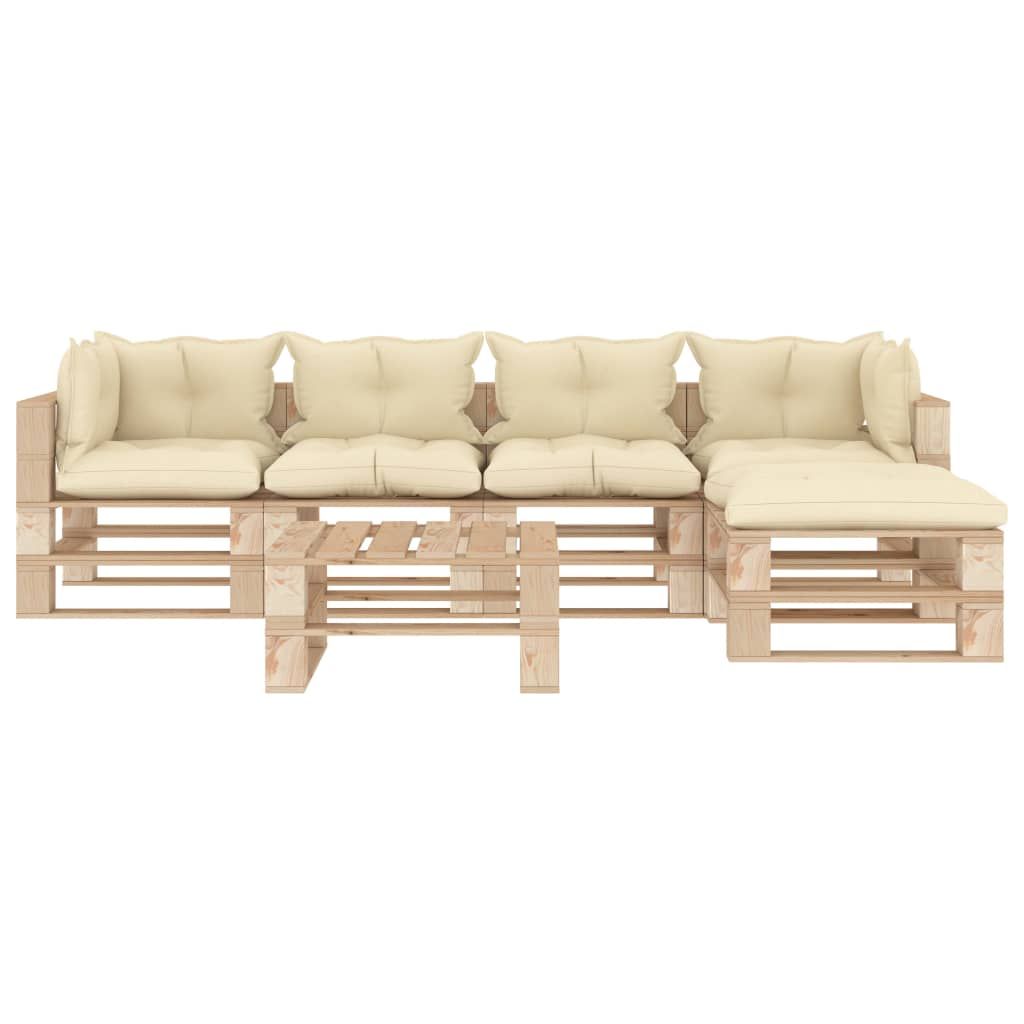 6-częściowy zestaw mebli ogrodowych z palet, kremowe poduszki