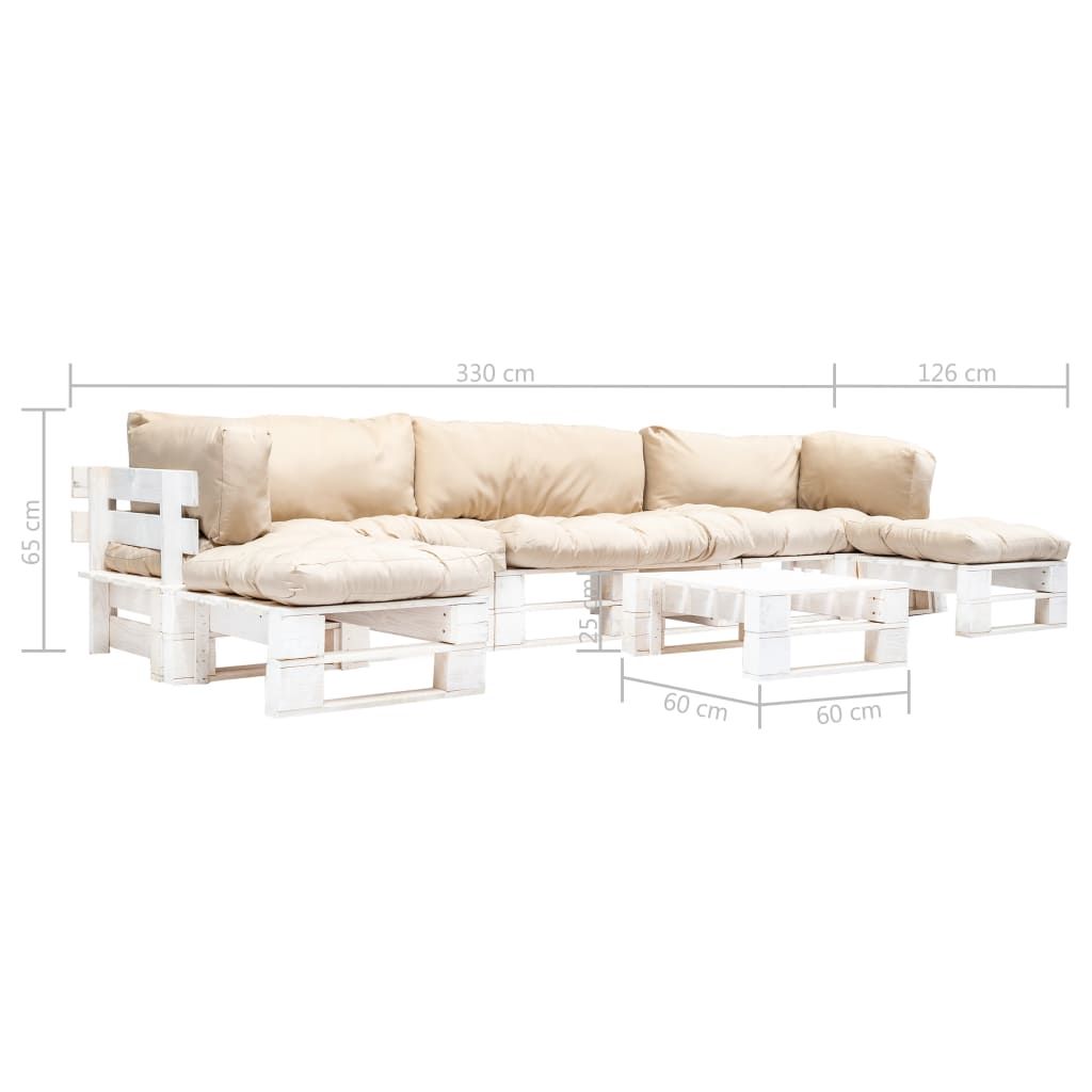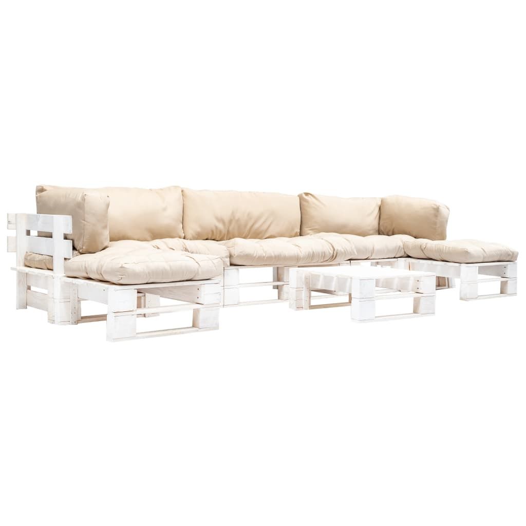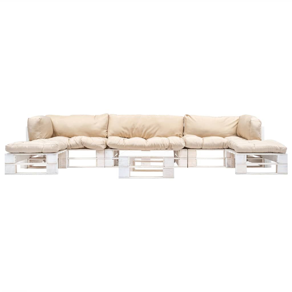 6-częściowy zestaw mebli z palet, piaskowe poduszki, drewno
