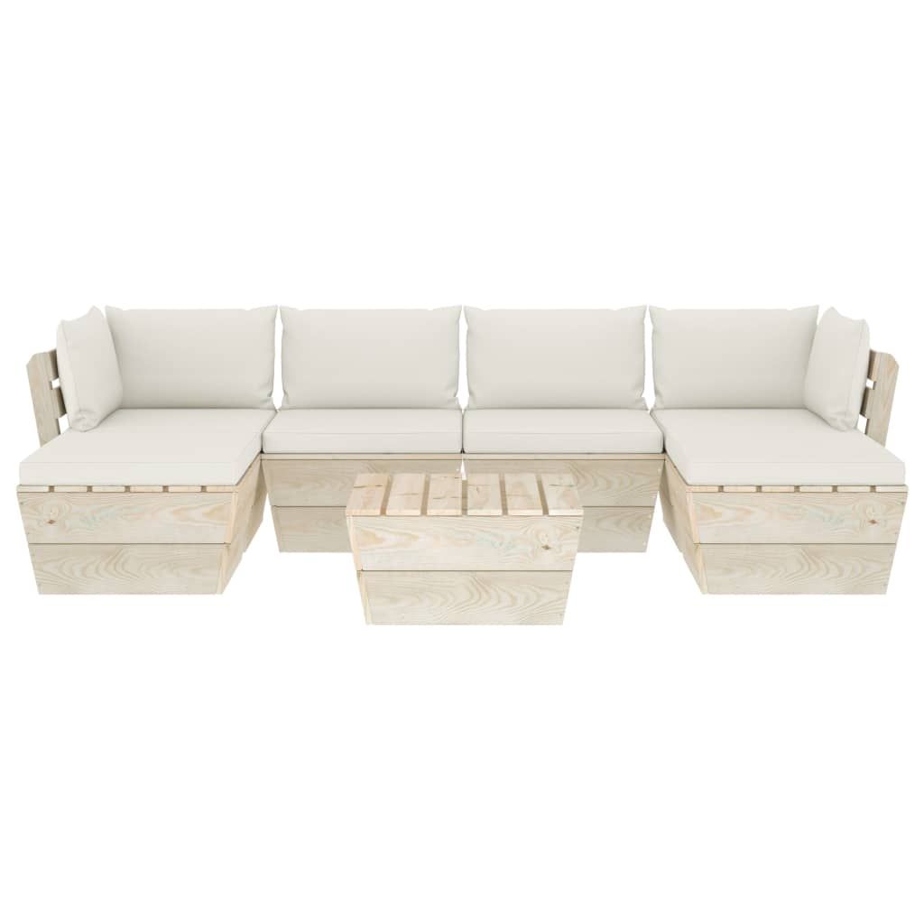 7-cz. ogrodowy zestaw wypoczynkowy z palet, poduszki, świerk