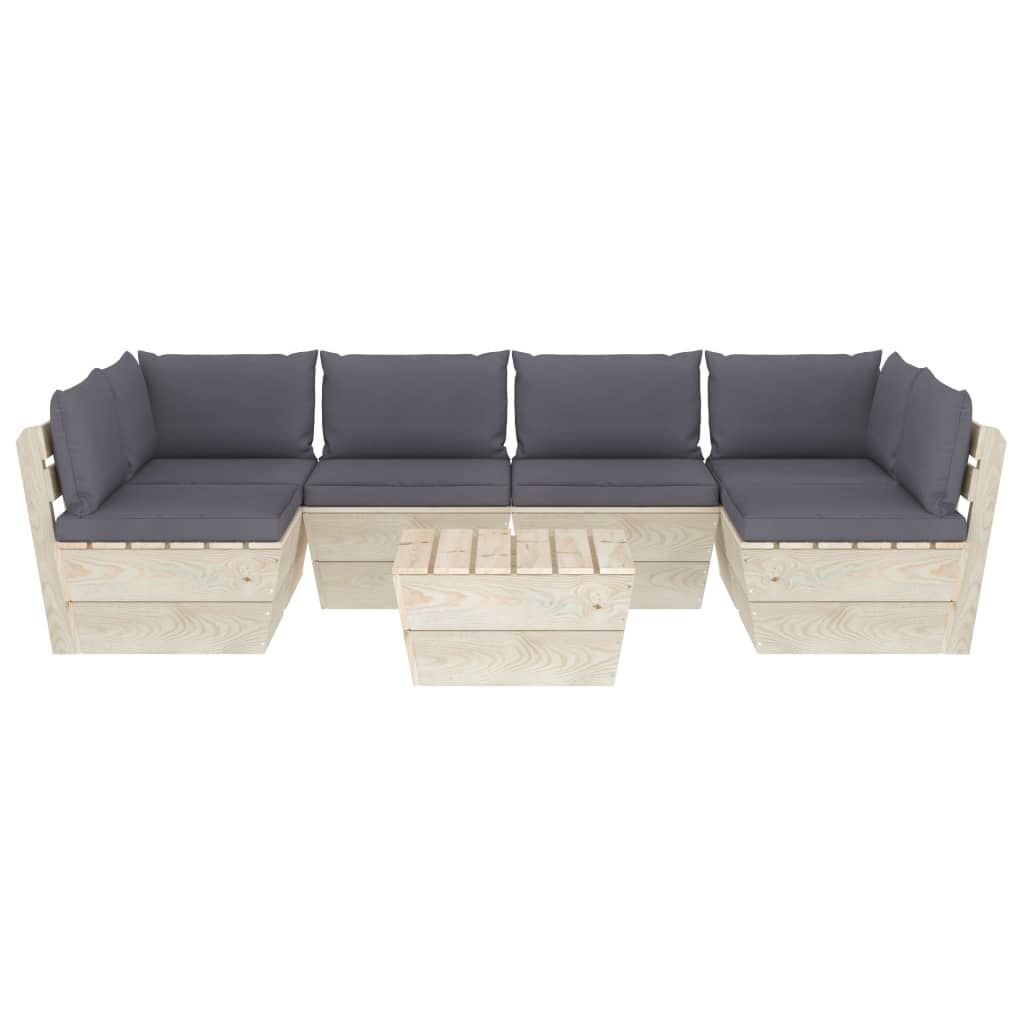 7-cz. ogrodowy zestaw wypoczynkowy z palet, poduszki, świerk