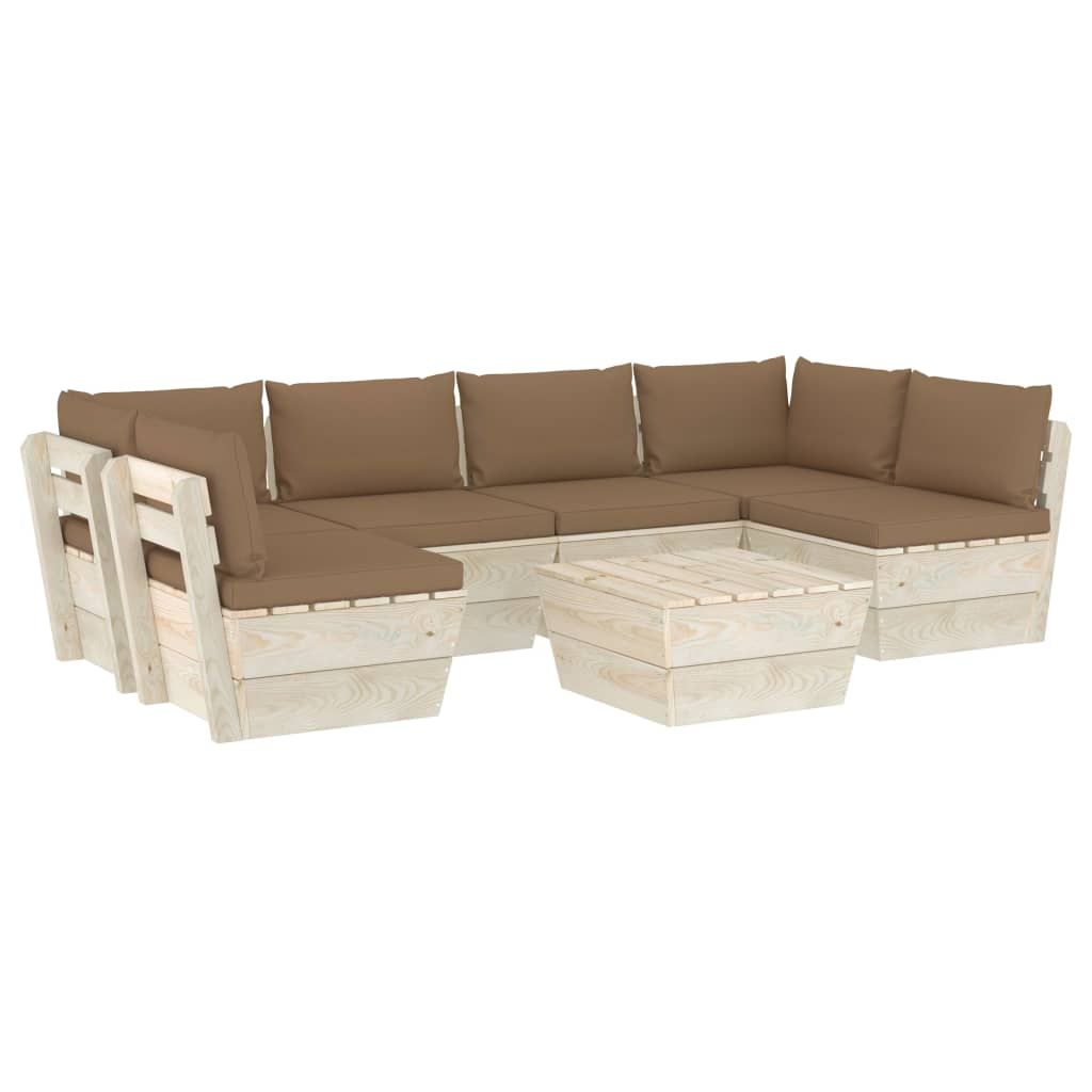 7-cz. ogrodowy zestaw wypoczynkowy z palet, poduszki, świerk