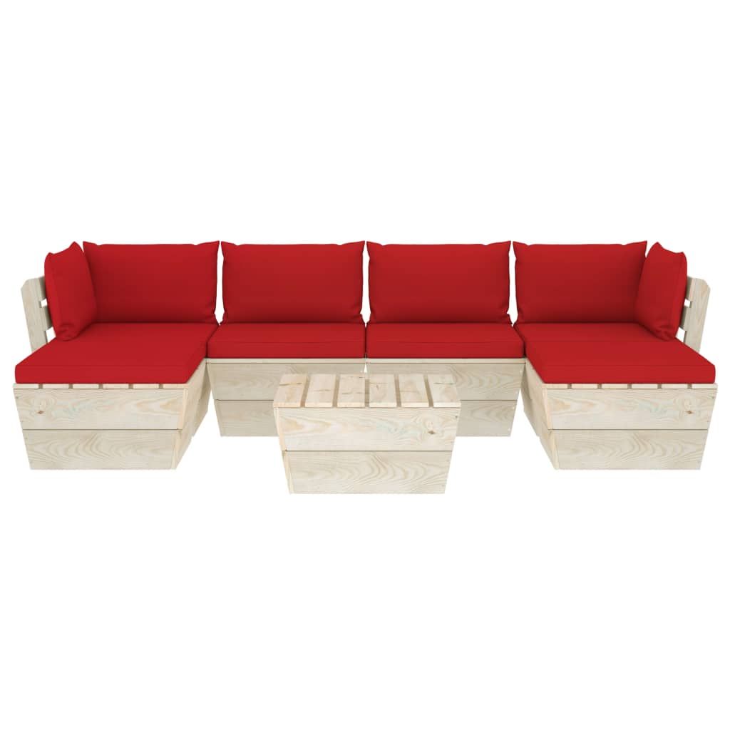 7-cz. ogrodowy zestaw wypoczynkowy z palet, poduszki, świerk