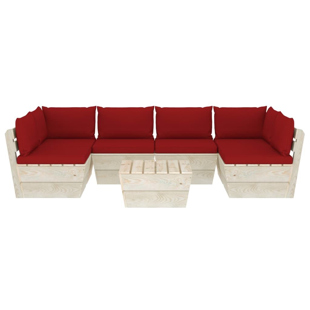 7-cz. ogrodowy zestaw wypoczynkowy z palet, poduszki, świerk