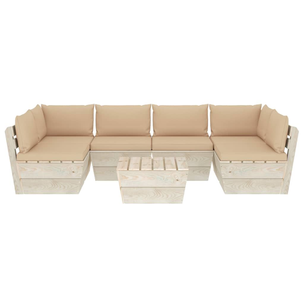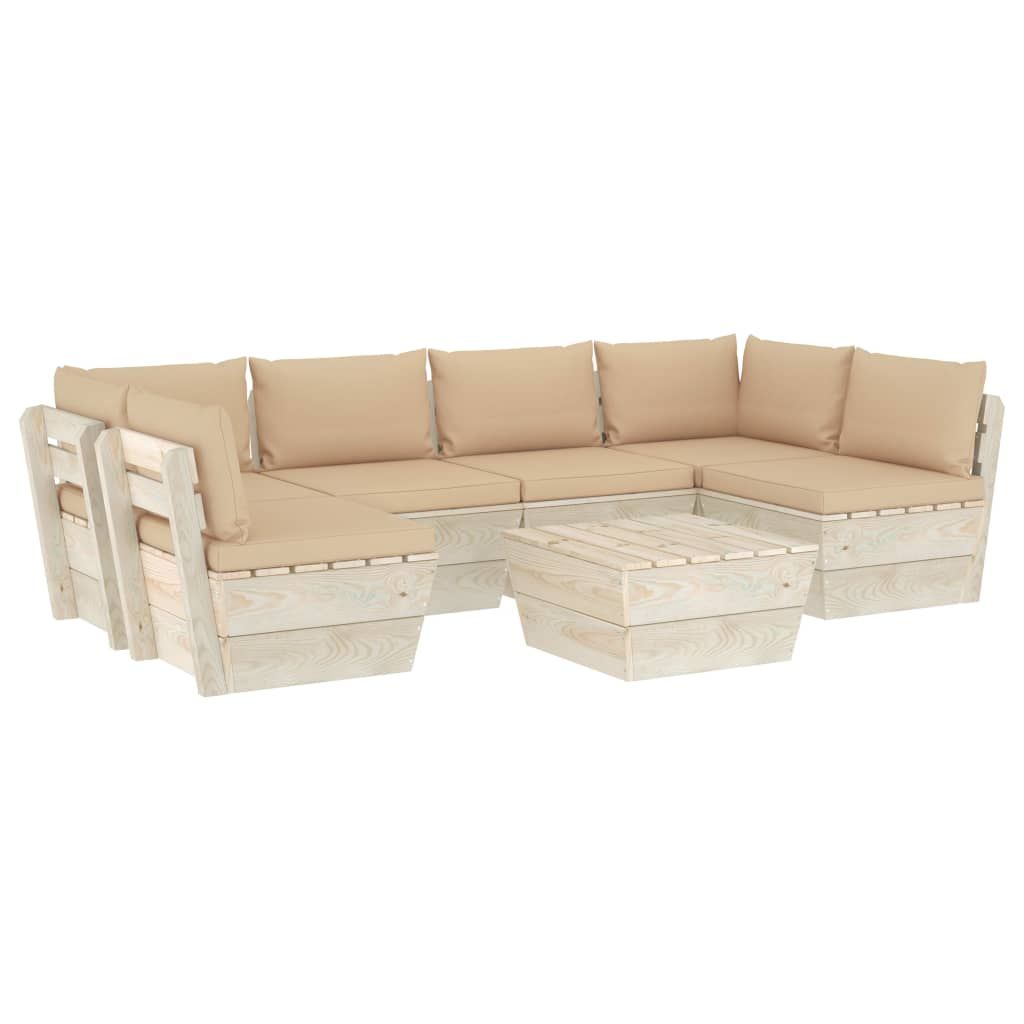7-cz. ogrodowy zestaw wypoczynkowy z palet, poduszki, świerk