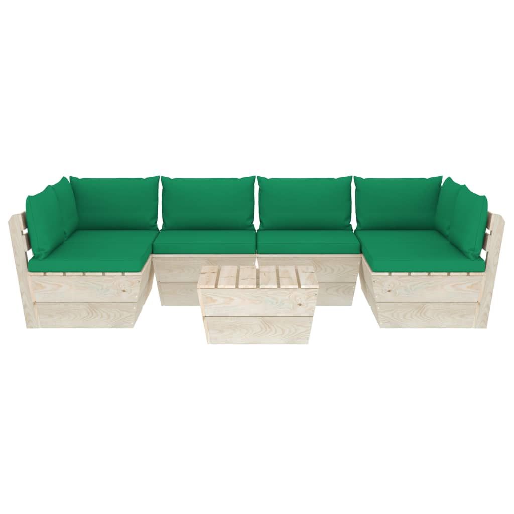 7-cz. ogrodowy zestaw wypoczynkowy z palet, poduszki, świerk