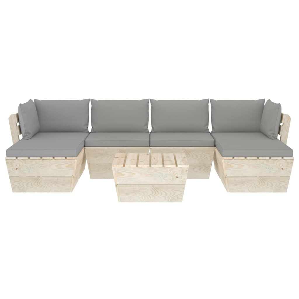 7-cz. ogrodowy zestaw wypoczynkowy z palet, poduszki, świerk
