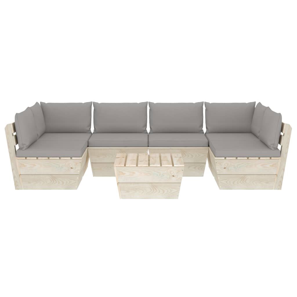 7-cz. ogrodowy zestaw wypoczynkowy z palet, poduszki, świerk