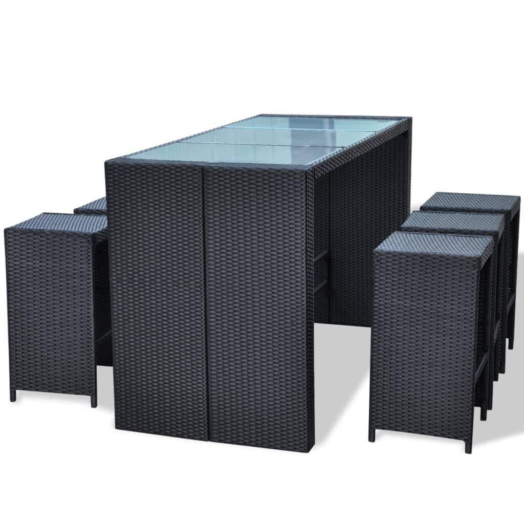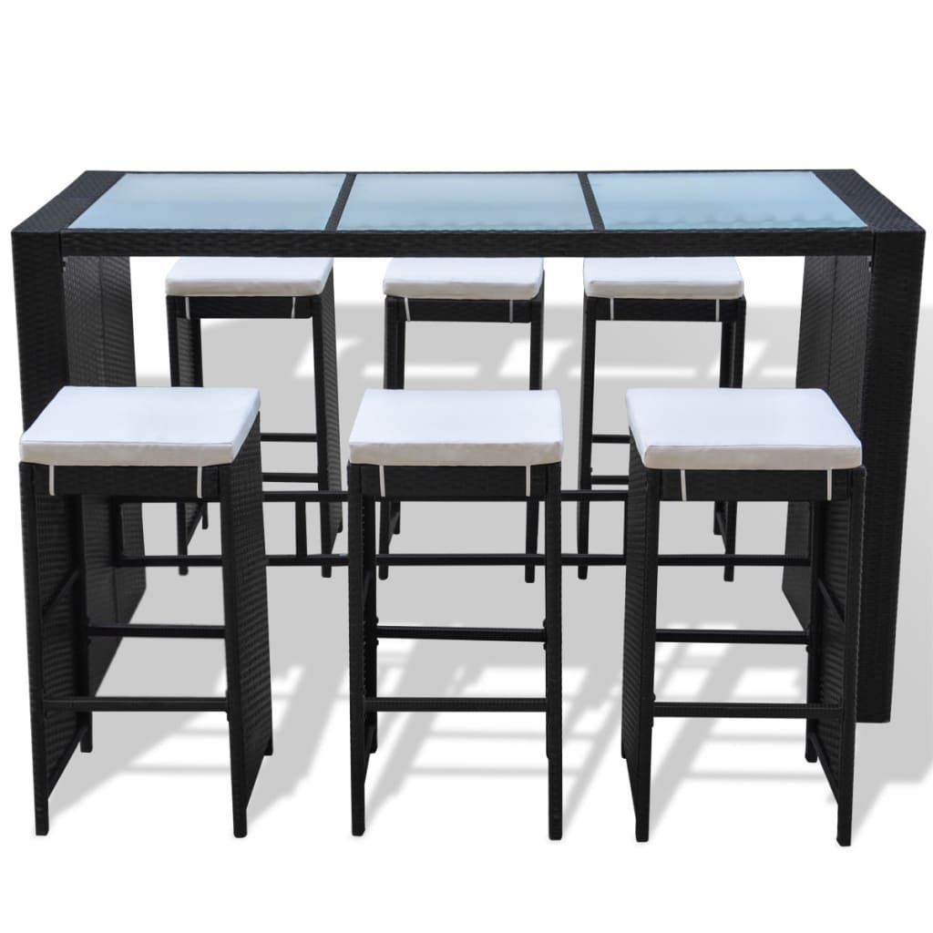 7-cz. zestaw barowy do ogrodu z poduszkami, rattan PE, czarny