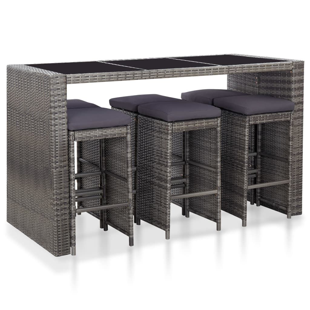 7-cz. zestaw barowy do ogrodu, z poduszkami, rattan PE, szary