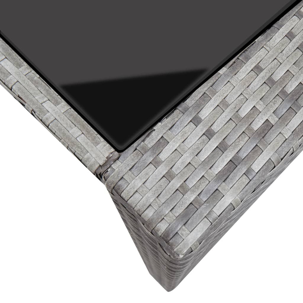 Opis produktu: Elegancki zestaw mebli polirattanowych będzie przyciągał uwagę w ogrodzie, na tarasie lub patio. Zestaw wykonany z odpornego na czynniki pogodowe i wodę rattanu PE, z blatem z 3 matowych płyt ze szkła hartowanego jest łatwy do czyszczenia, mocny i odpowiedni do codziennego użytku. Malowana proszkowo, stalowa rama sprawia, że stół i krzesła są stabilne i trwałe. Dzięki lekkiej konstrukcji meble są łatwe do przenoszenia. Grube, zdejmowane poduszki są wyjątkowo komfortowe. Poszewki z poduszek z suwakami można zdjąć i wyprać. Uwaga: zalecamy przykrycie zestawu na czas deszczu, śniegu i mrozu.