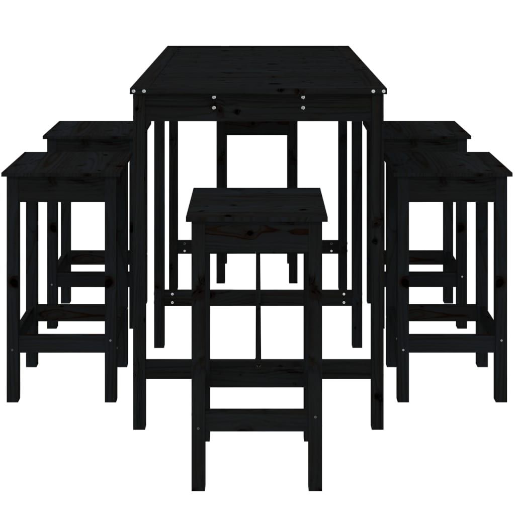 7-cz. zestaw mebli barowych do ogrodu, czarny, drewno sosnowe