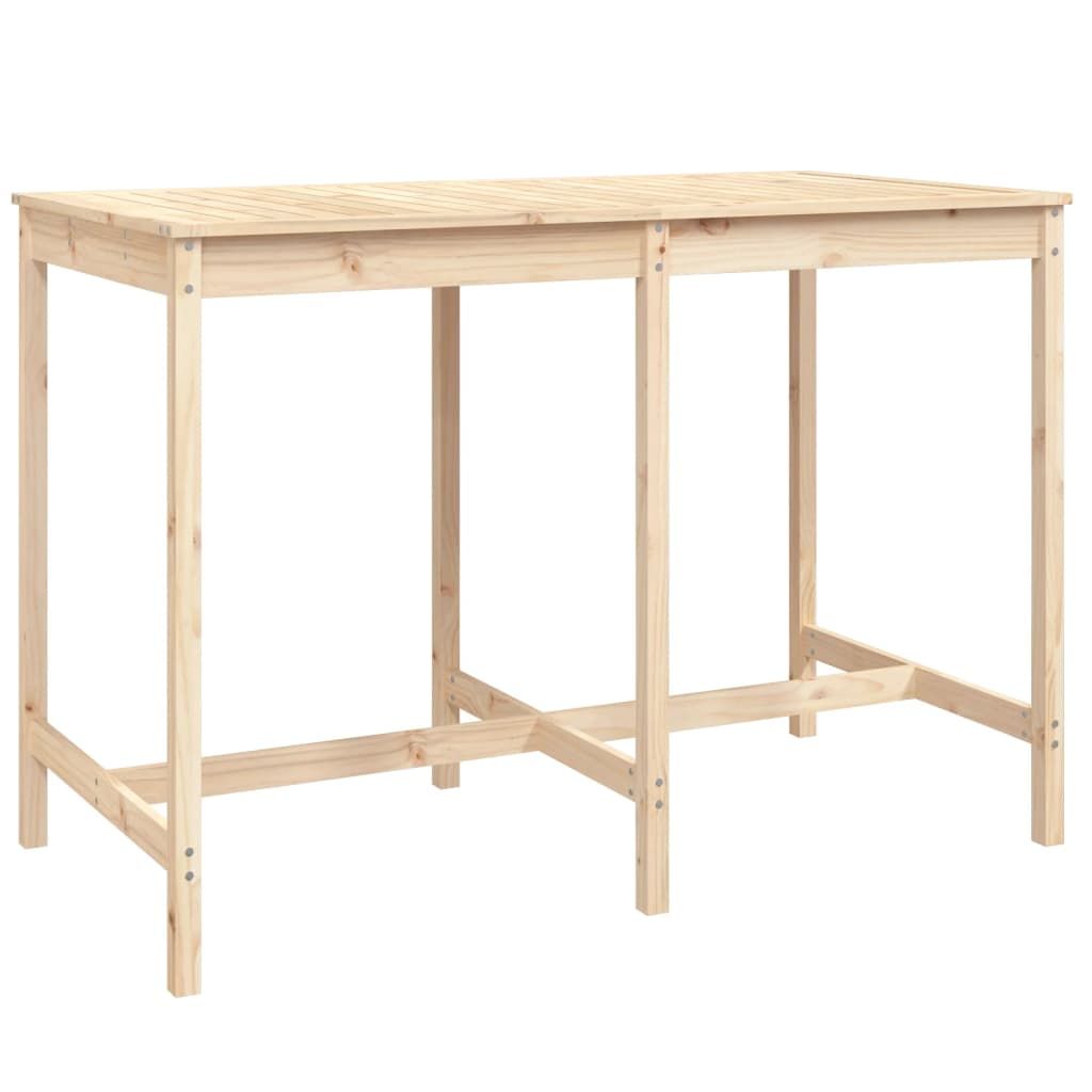 Zaserwuj sobie drinka lub zjedz smaczny posiłek z rodziną i przyjaciółmi przy tym pięknym zestawie drewnianych mebli barowych! Lite drewno sosnowe: meble barowe wykonano z litego drewna sosnowego. Drewno sosnowe to piękny, naturalny materiał. Cechuje się prostą strukturą słojów, a sęki nadają mu wyjątkowy, rustykalny wygląd.Mocny blat: solidny blat stolika barowego będzie idealnym miejscem na napoje, przekąski i przedmioty dekoracyjne.Praktyczna konstrukcja: drewniane stołki barowe nie mają oparć, możesz więc wygodnie usiąść na nich w dowolną stronę, a także wsunąć je pod blat, gdy nie są używane.Wiele zastosowań: za sprawą minimalistycznego designu zestaw mebli barowych można wkomponować w róg ogrodu, taras, balkon lub podwórko. Uwaga:Aby utrzymać meble ogrodowe w dobrej kondycji, zalecamy zabezpieczenie ich wodoodpornym pokrowcem.