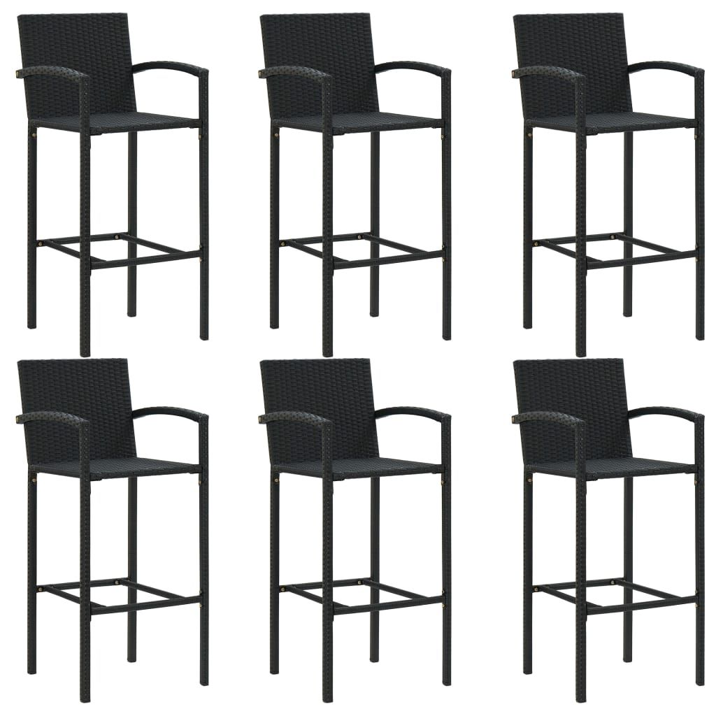 7-cz. zestaw mebli barowych z podłokietnikami, czarny rattan PE