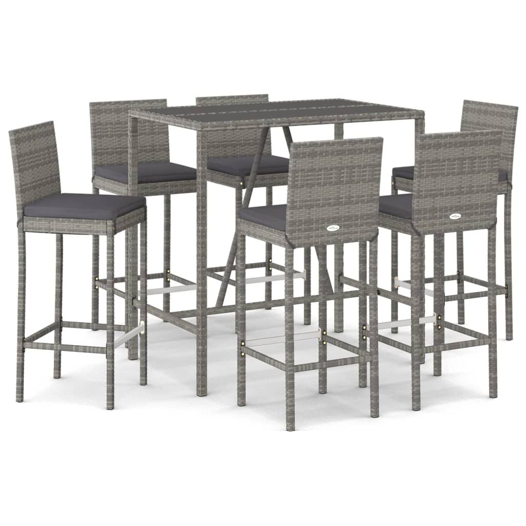 7-cz. zestaw mebli barowych z poduszkami, szary polirattan