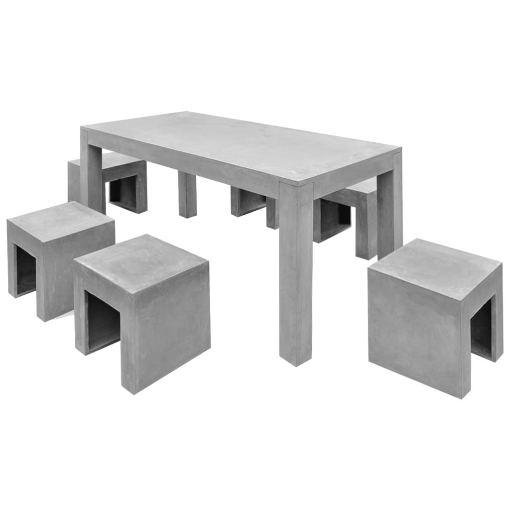Ten zestaw mebli betonowych będzie przyciągać uwagę w każdym miejscu. Z pewnością stanie się ozdobą Twojego domu lub dowolnej przestrzeni na zewnątrz. Naturalny materiał jest kluczem do wyjątkowego stylu, dopasowując się idealnie do otaczającego środowiska. Ten wyjątkowy zestaw zapewnia wygodne i przyjemne miejsce, aby zjeść smaczny posiłek lub po prostu cieszyć się słonecznym popołudniem z rodziną. Wykonany z litego betonu zestaw mebli nadaje się do użytkowania zarówno wewnątrz, jak i na zewnątrz pomieszczeń. Wytrzymały i odporny na warunki atmosferyczne, gwarantuje długą żywotność. 4 nogi stołu są zdejmowane. Dostawa obejmuje 1 stół i 6 stołków.
