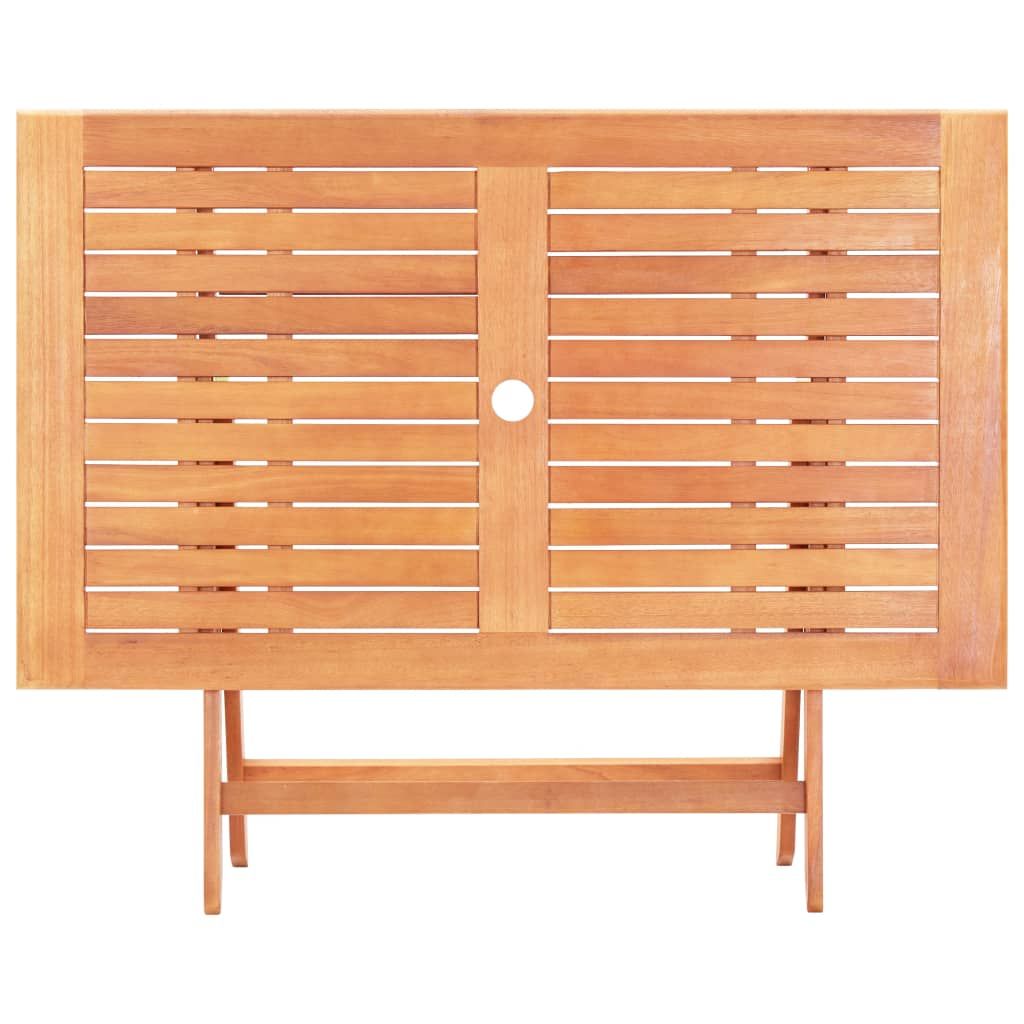 Nadaj swojemu patio, ogródkowi i innej przestrzeni na zewnątrz piękny i naturalny wygląd dzięki naszemu rustykalnemu, a jednocześnie eleganckiemu zestawowi drewnianych mebli jadalnianych. Zestaw do jadalni na świeżym powietrzu wykonany jest z litego drewna eukaliptusowego, które jest odporne na warunki atmosferyczne i trwałe, co zapewnia wiele lat użytkowania. Krzesła o ergonomicznym kształcie gwarantują optymalny komfort siedzenia. Wykończona olejem powierzchnia jest również łatwa do czyszczenia za pomocą wilgotnej ściereczki. Za sprawą przemyślanej konstrukcji ten zestaw mebli ogrodowych można złożyć, aby zaoszczędzić miejsce, gdy nie jest używany.