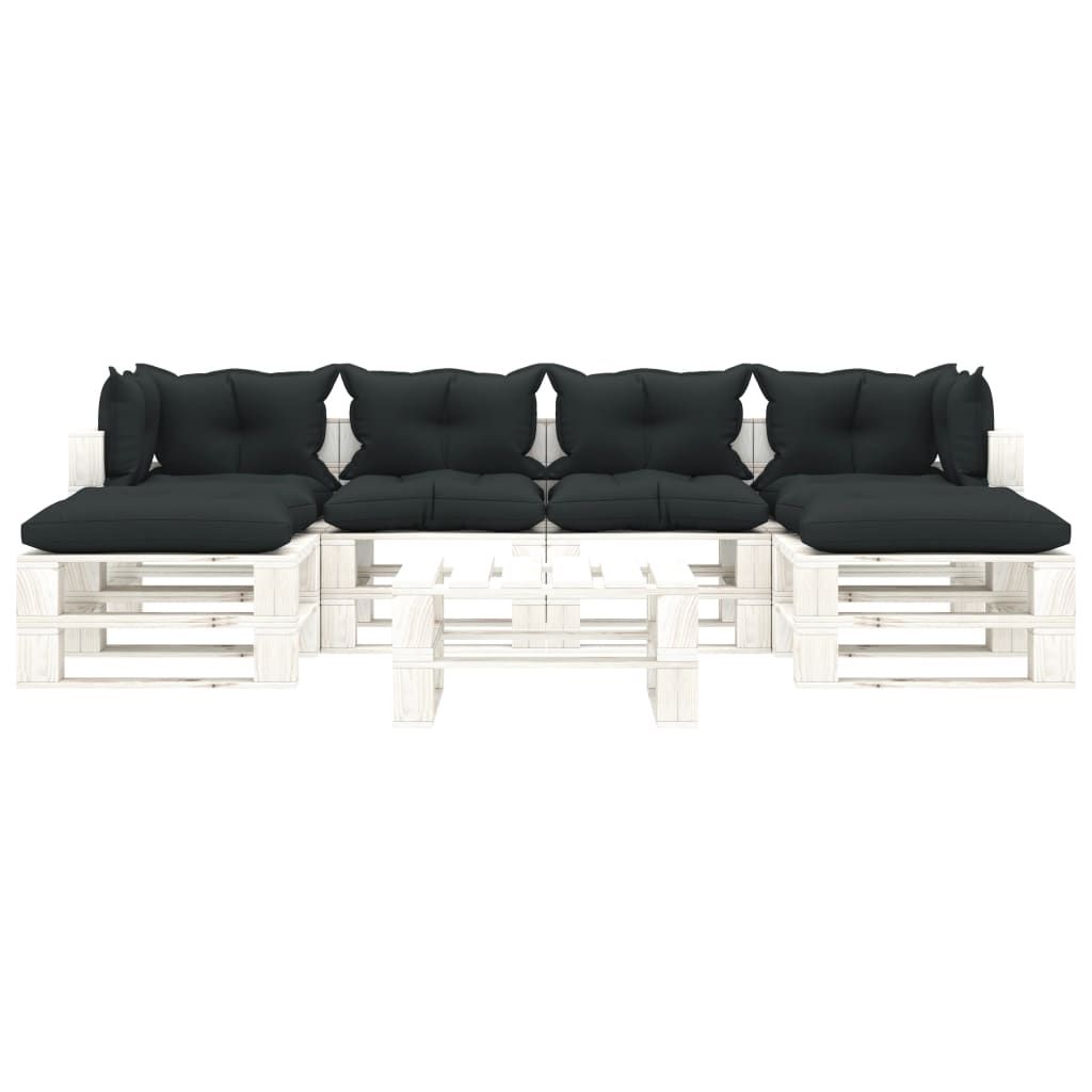 7-cz. zestaw mebli ogrodowych z palet, antracytowe poduszki