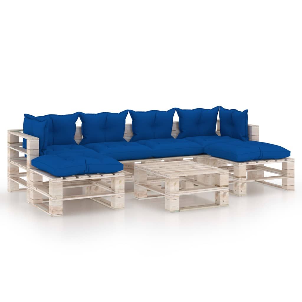 7-cz. zestaw mebli ogrodowych z palet, z poduszkami, sosna