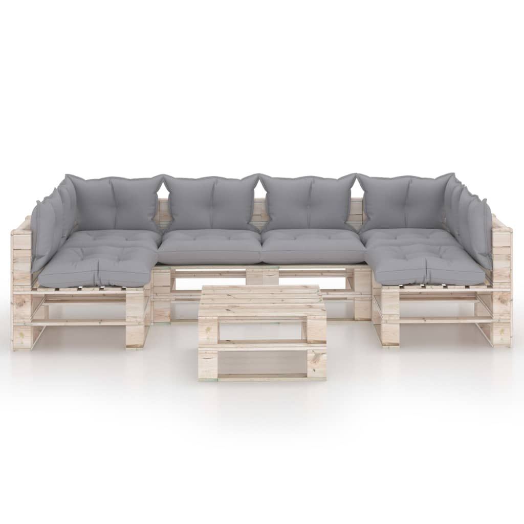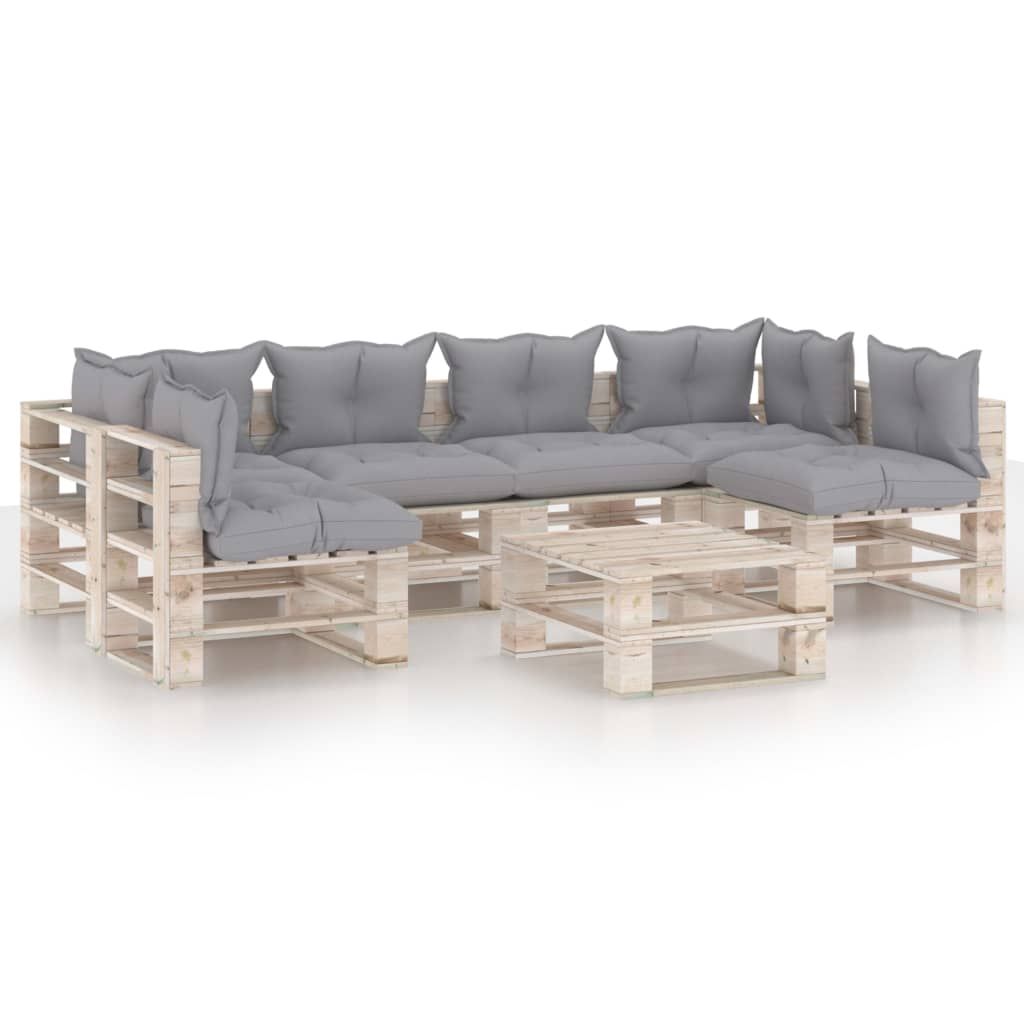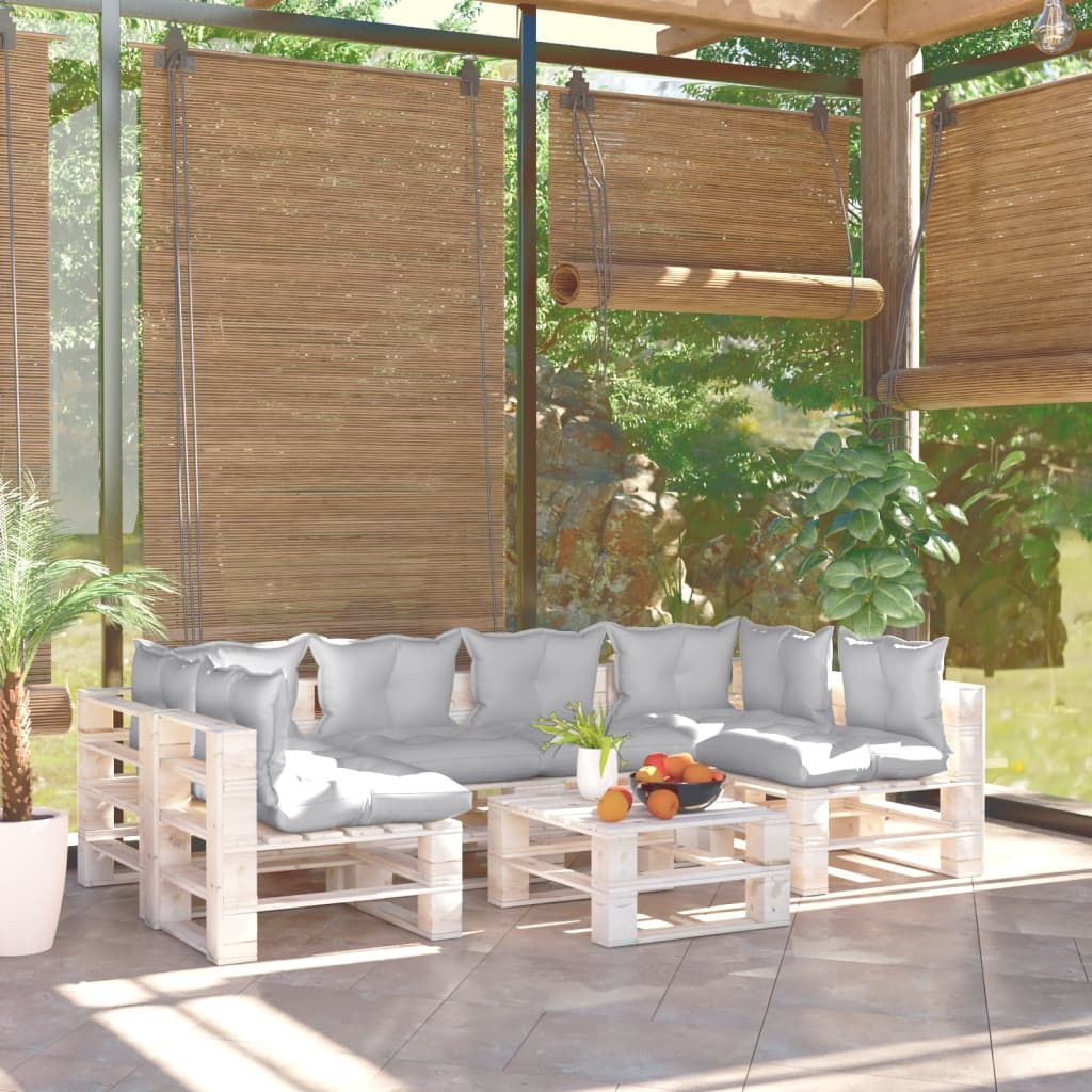 7-cz. zestaw mebli ogrodowych z palet, z poduszkami, sosna